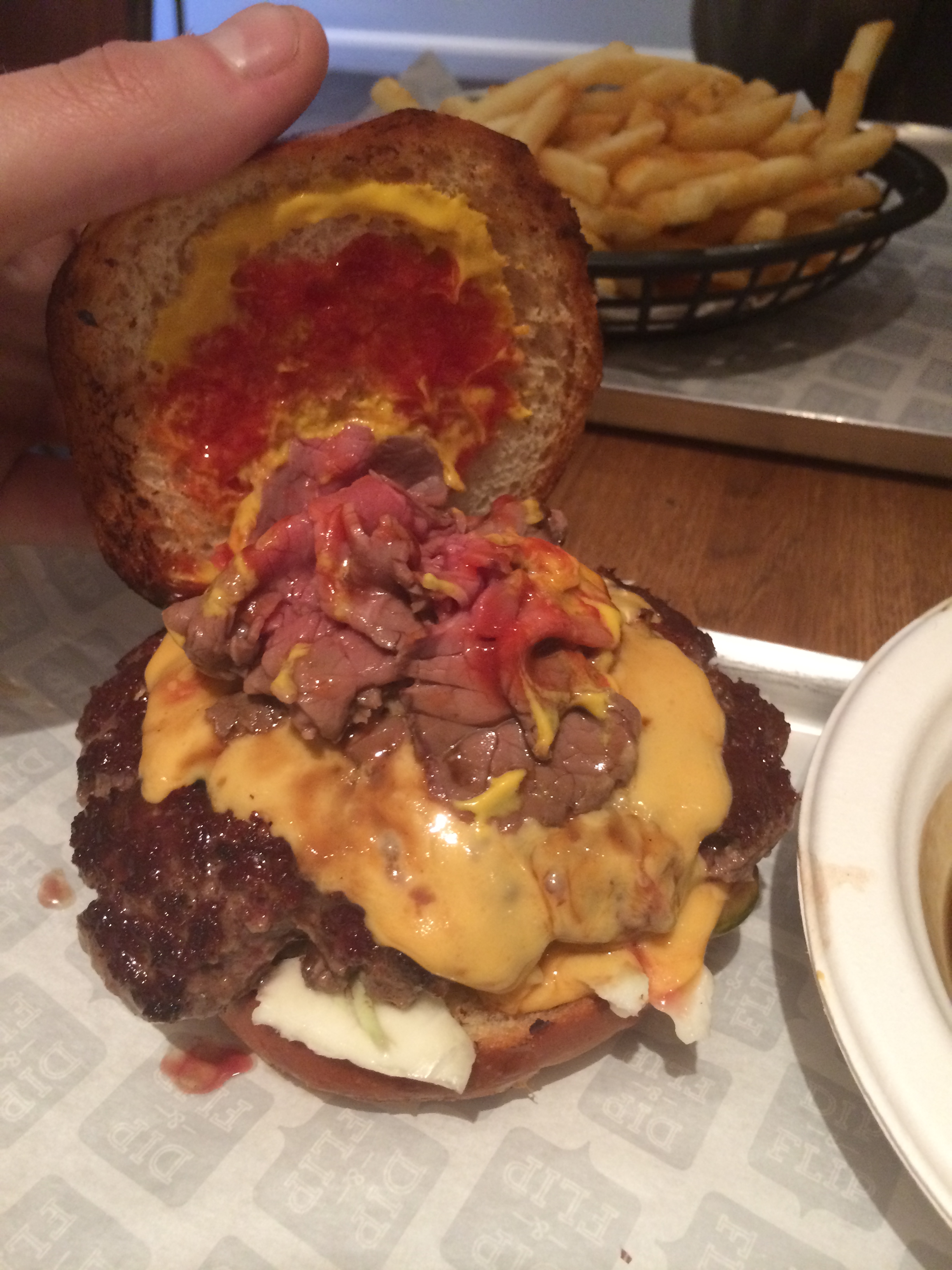 This definitely takes the prize for messiest burger, especially if you dip! Its already super juicy so the brioche bun reaches saturation point pretty quickly.