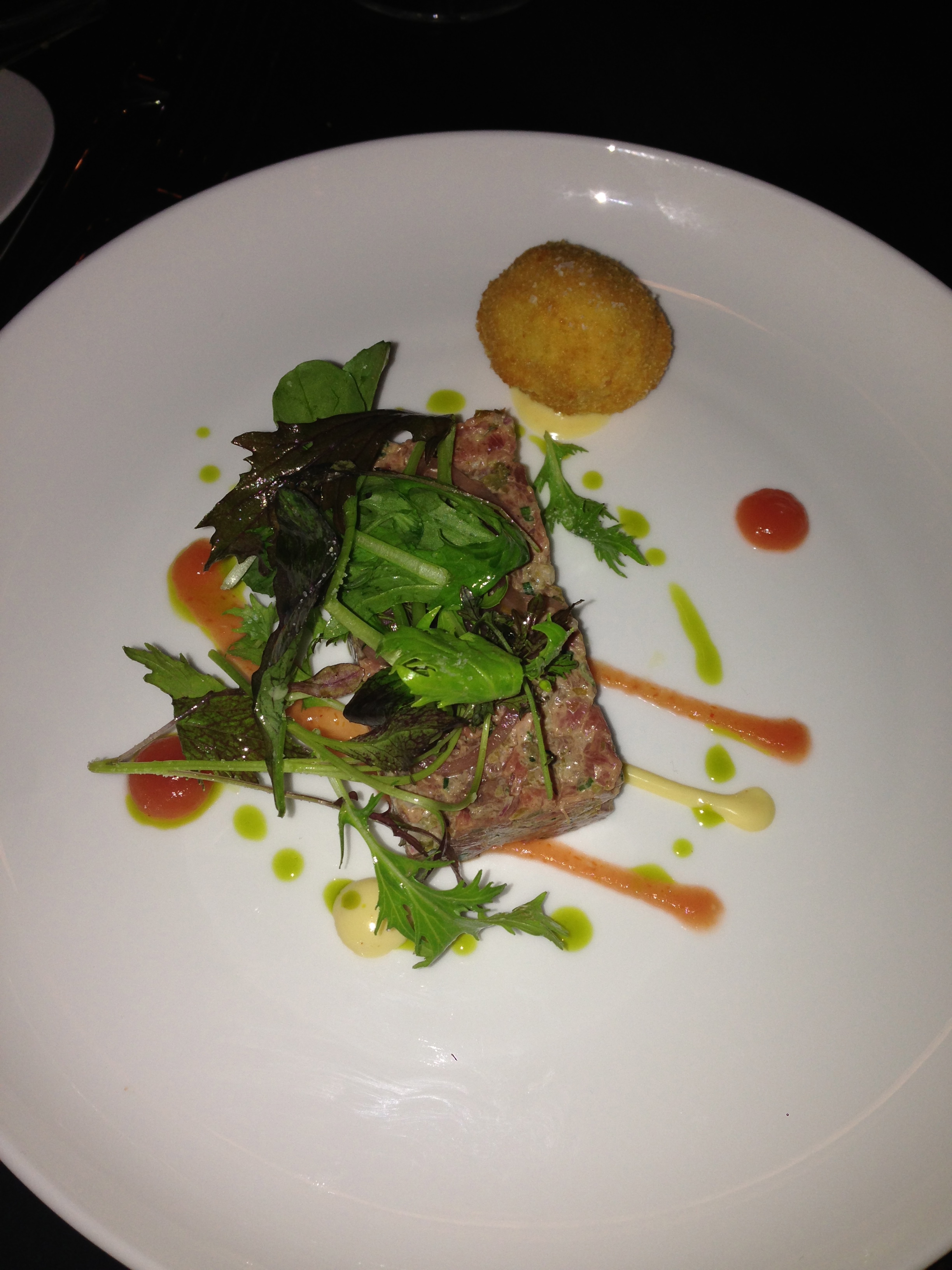 This branch of Aqua serves contemporary British cuisine. To start i had the beef tatar with a scotched quail egg and Bloody Mary ketchup. One of the best tartars i have had, perfectly seasoned, with a running yoke in the scotched egg and nicely spiced ketchup.