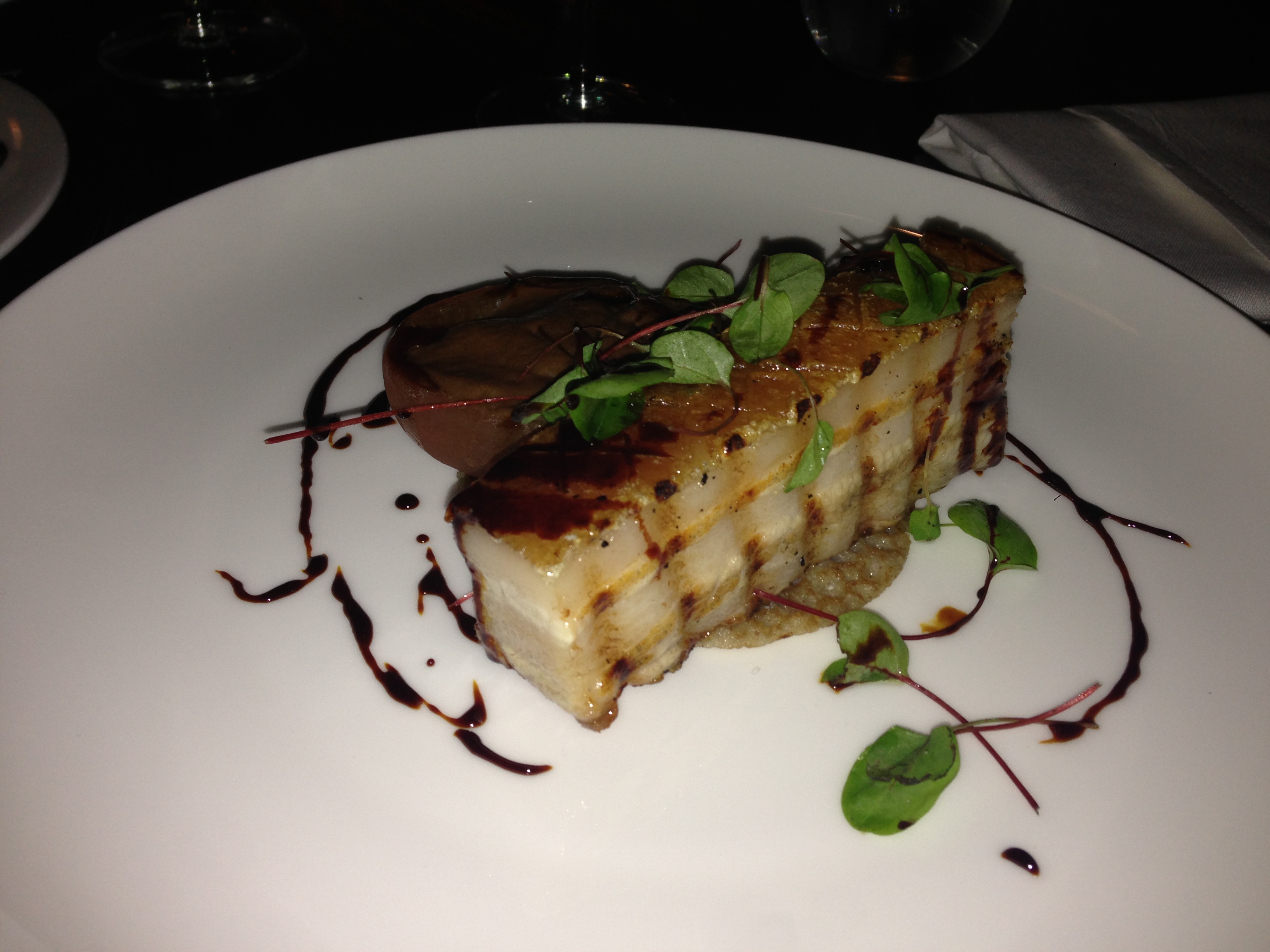 The pork belly, with buck-wheat pancake, spiced fruit chutney, black pudding, heirloom tomato with pork and orange jus. the pork was so tender i did not ever need the knife and all the fat and rendered out to leave just the amazing flavour of pork belly. The tomato had really flavour to it and the chutney didn’t over power the pork, but you got a hint of spice.